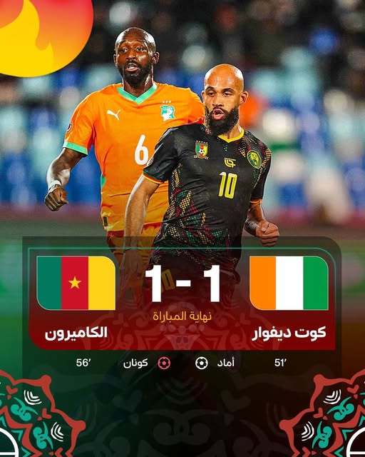 أسدل الستار مساء يومه الأحد 28 دجنبر الجاري من ملعب مراكش الكبير عن مباريات الجولة الثانية ضمن دور المجموعات ،من خلال إجراء قمة المجموعة السادسة بين حامل اللقب منتخب ساحل العاج و منتخب الأسود غير المروضة الكاميروني ، والتي أنتهت بلا غالب ولا مغلوب، حيث حسمها التعادل الإيجابي(1-1).