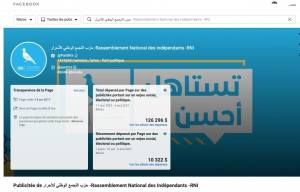 تصدر حزب التجمع الوطني للاحرار الأحزاب المغربية في حجم الانفاق على الحملات الممولة على شبكة الفايسبوك المرتبطة بالحملة الانتخابية منذ شهر مارس الماضي الى غاية بداية شهر غشت الجاري وفقا للمعطيات التي ضمها تقرير الشفافية الدوري التي يتيحه الفايسبوك للعموم..