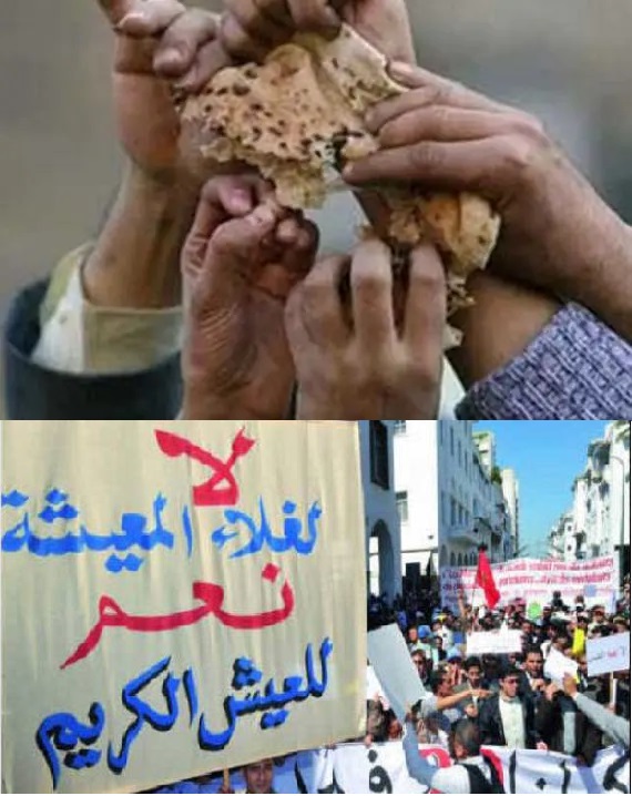 هذا وعاشت عدد من المدن والقرى المغربية، احتجاجات لعدد من المتضررين فرادى وجماعات هزمهم  الوضع الاجتماعي والاقتصادي الحالي بالمغرب، حيث باتت فيديوهات تحكي مأساة هؤلاء تنتشر على نطاق واسع  بمنصات التواصل الاجتماعي وعلى المواقع الالكترونية المغربية، قاسمها المشترك”ماعندي ما ناكل”، وذلك في انعطافة اجتماعية خطيرة تؤشر بحسب المتتبعين على دخول المغرب بسبب الغلاء، إلى مرحلة”ثورة الجياع” والتي تضع البلاد  أمام تحديات كبيرة، في مقابل الصمت الرهيب للحكومة والدولة، خصوصا أن “حكومة الكفاءات”التي حملت قبل انتخابات 2021 شعار”المغرب انطلق”، اكتشفت عجزها وعدم قدرتها على إيجاد الحلول، حيث اكتفت في موضوع الغلاء باعترافها عقب اجتماعها الأسبوعي للخميس الماضي، بمحدودية الإجراءات والتدابير التي اتخذتها لمحاربة ارتفاع الأسعار، محملة مسؤولية عجزها للسماسرة والوسطاء وهي تقر على لسان الناطق الرسيمي باسم حكومة أخنوش بأن” مشكل الغلاء أعمق بكثير” حاملة بذلك الراية البيضاء بعدما ظلت ترسل رسائل التطمين للمغاربة والذين وجدوا أنفسهم في مواجهة مباشرة مع الجوع، بعدما أعدمت الأسعار عددا من المواد الغذائية الأساسية من على موائدهم.