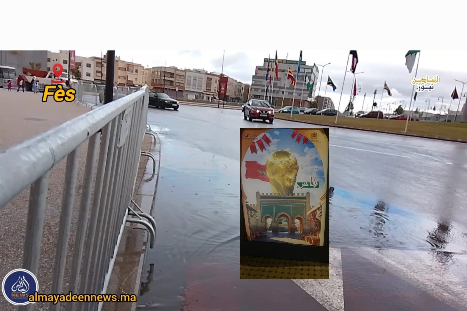 فبعد غرق جل الطرق والممرات الموازية لها في برك مياه الأمطار، واختفاء كل مظاهر الزينة الباهتة لتحل محلها الصور البشعة بالشوارع التي خضعت لأشغال التهيئة ضمن الصورة الجديدة لفاس الافريقية والمونديالية، تفاجأ عدد من الأجانب والمغاربة من سكان مدينة فاس، عقب خروجهم من المقابلة التي جمعت مساء يوم أمس الثلاثاء 23 دجنبر الجاري، منتخبي نيجريا وتانزانيا، بمعاينتهم لانهيار أرضي في أحد الأرصفة التي تحيط بالملعب الكبير لمدينة فاس على أحد الشوارع الرئيسية، وذلك بسبب تسرب مياه الامطار، وهو ما يكشف جانبا من الغش في انجاز الأرصفة وطرق الشوارع المؤدية للملعب.