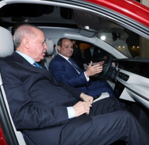 وبخصوص السيارة الكهربائية التركية والتي سرقت أنظار المشاركين في أشغال مجلس التعاون الاستراتيجي رفيع المستوى بين تركيا ومصر، أوضح المتحدث باسم الرئاسة المصرية،السفير محمد الشناوي، إلى أن السيسي”تفقد السيارة بحديقة قصر الاتحادية، ثم قام بقيادتها مصطحبًا الرئيس أردوغان، من قصر الاتحادية حتى مقر انعقاد منتدى الأعمال المصري التركي بفندق الماسة بمدينة نصر.
