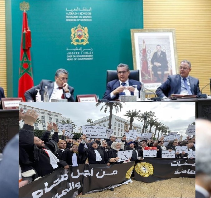 وفي هذا السياق أعلنت جمعية هيئات المحامين بالمغرب عن تعليق الإضراب الشامل عن خدمات المحامين داخل محاكم المملكة، والعودة إلى ومن ثمة العودة إلى أداء مهامهم ابتداء من يوم الاثنين المقبل 16 فبراير الجاري، حيث أثنى بلاغ الجمعية على النقاش مع رئيس الحكومة،اعتبروه “مسؤولًا وصريحًا” حول مسار المشروع والمرحلة الراهنة، إذ حصل ذلك في غياب وزير العدل عبد اللطيف وهبي عن هذا اللقاء، وذلك ضمن منعطف جديد أنهى علاقات”الود”وأجواء الدفء التي لم تصمد طويلا ما بين الجمعية ووزير العدل، المتهم “بخيانة” اتفاق اعتماد مبدأ التشاركية في التعاطي مع قضايا وملفات المحامين بالمغرب ومن ضمنها قانون مهنتهم.