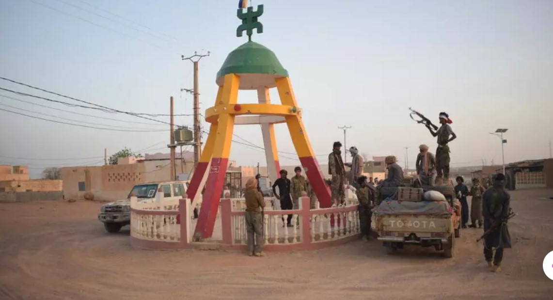 تجمع لمتمردي الطوارق "تحالف جبهة تحرير أزواد (FLA)" عند مدار كيدال. كيدال، في 26 أبريل 2026. © أ ف ب